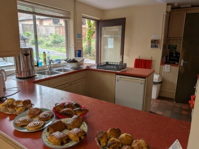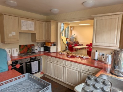 A full food preparation space, with Oven, Hob, Fridge, Kettle, Dishwasher Urns etc.